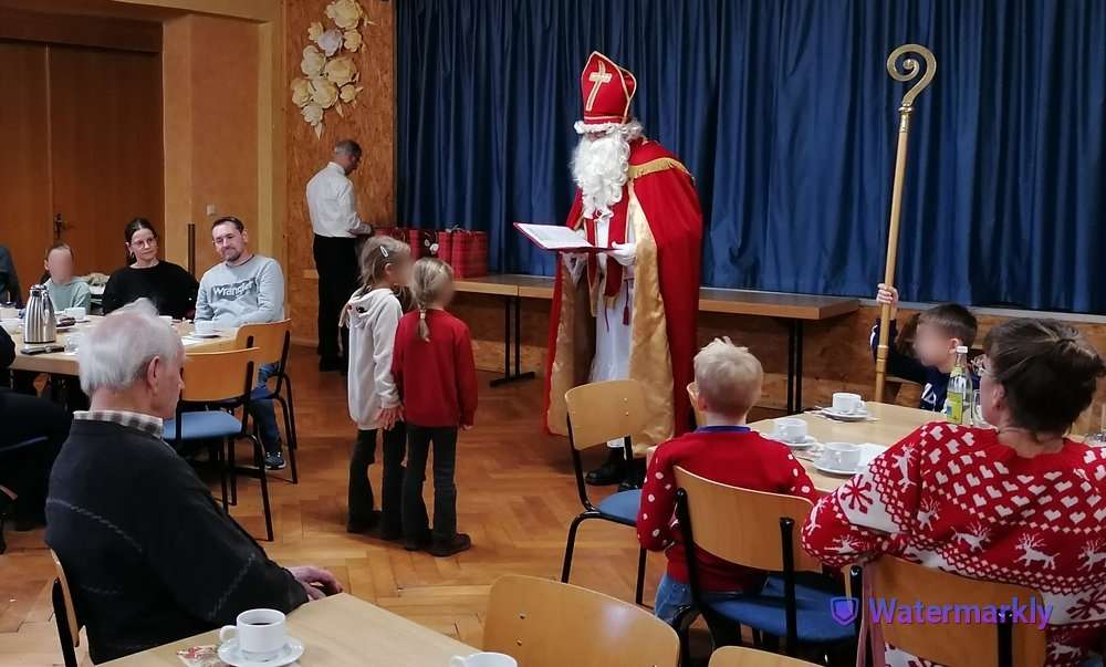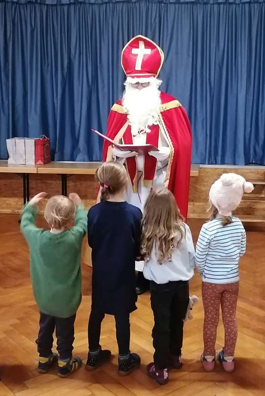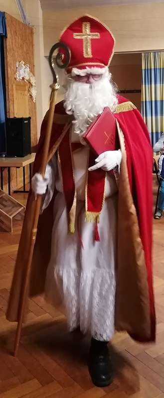 Bevor die Jüngsten ihre prall gefüllte Tüte in Empfang nehmen durften, lauschten sie gespannt, als der Nikolaus aus seinem goldenen Buch las, was Gutes und weniger Gutes von den Eltern überliefert wurde. Doch die Erleichterung war groß: Der gütige Mann mit Mitra, Bischofsstab und Rauschebart fand keine Einträge, die den Knecht Ruprecht auf den Plan gerufen hätten! Die Freude über die Bescherung war somit ungetrübt und strahlende Kinderaugen der schönste Dank.